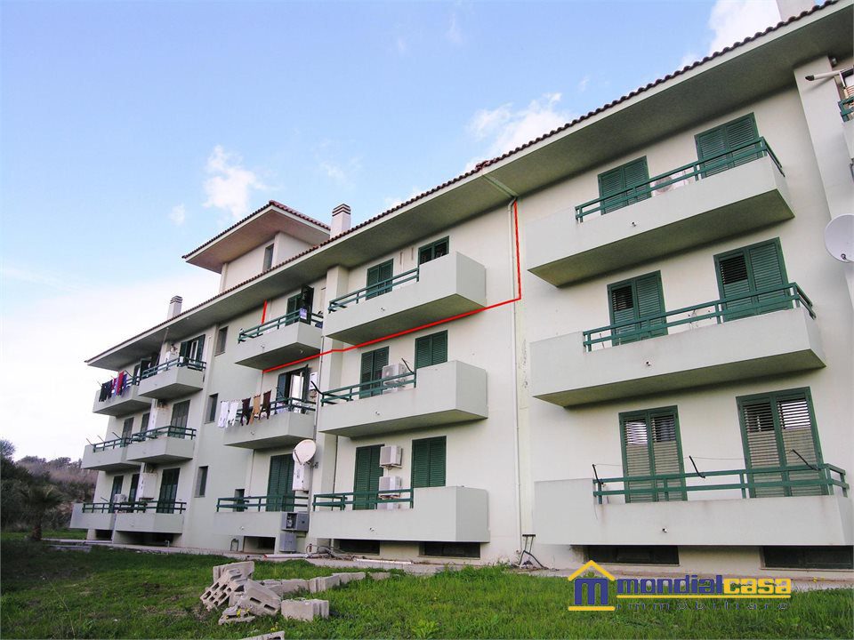 Appartamento a secondo piano di un edificio con solo sei appartamenti, l'appartamento si trova in condizioni quasi abitabile da subito, ingresso unico su spazioso soggiorno, ambiente cucina di comode dimensioni, disimpegno che separa dalla zona giorno ben due camere da letto, oltre alla camera matrimoniale, bagno, doppio servizio/lavanderia ed in fine un'utile ripostiglio; come si può ben vedere l'appartamento gode di ben quattro comodi balconi, su tutti gli ambienti ed è munito di impianto di riscaldamento con termosifoni (manca solo la caldaia).. Compreso nella vendita un garage indipendente ed inoltre di rimpetto anche una cantina, entrambi di pertinenza esclusiva, questi al piano seminterrato dell'edificio, con accesso dallo spazio di manovra munito di serranda automatizzata. Comoda soluzione in un bel contesto, adornato di verde e parcheggi, in zona viale A.Moro servita in pieno, con scuole, e le più svariate attività commerciali.