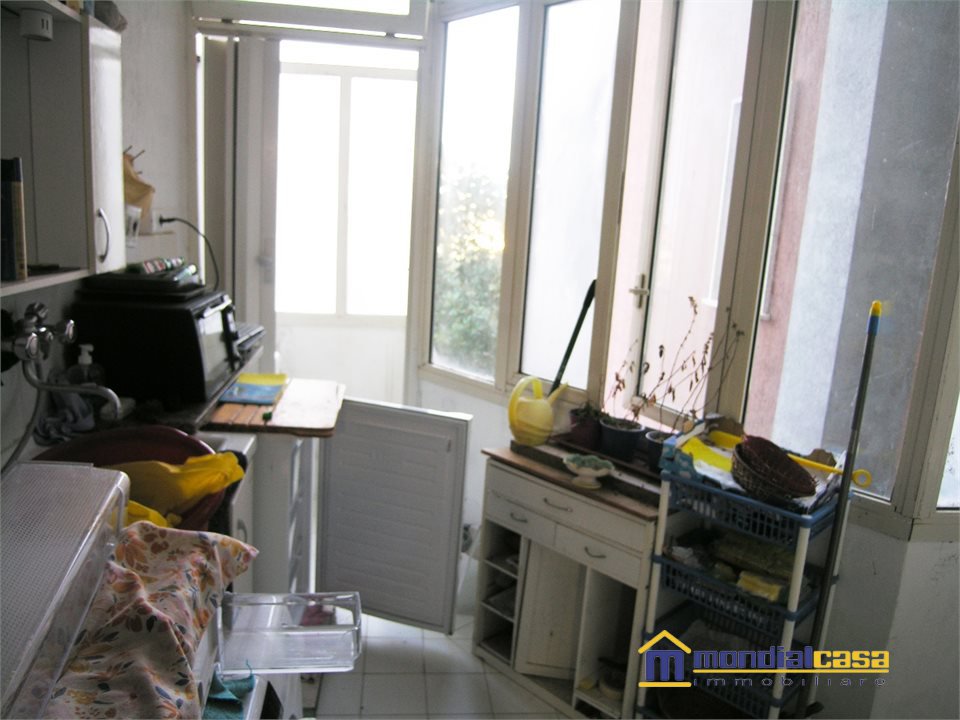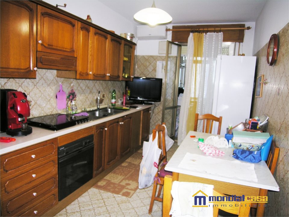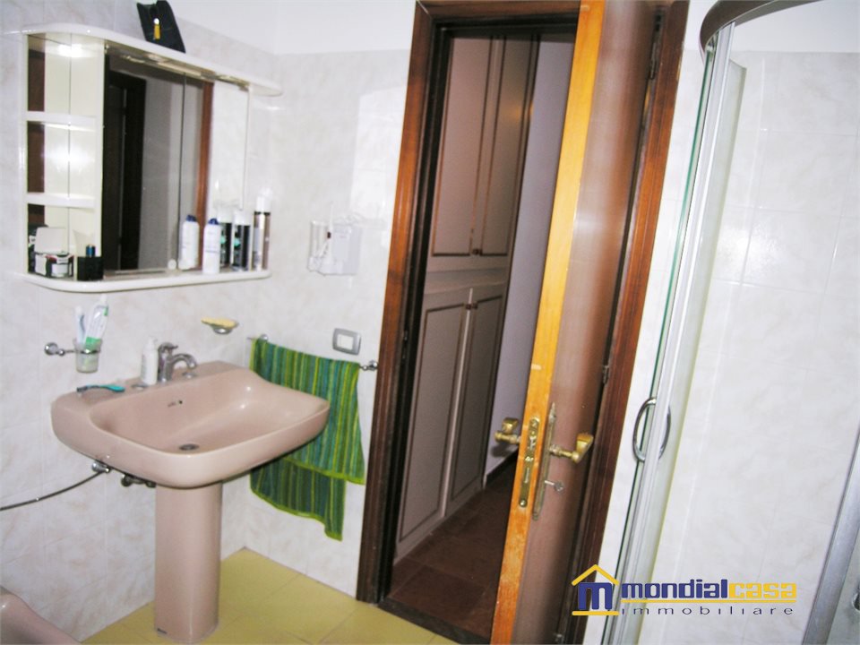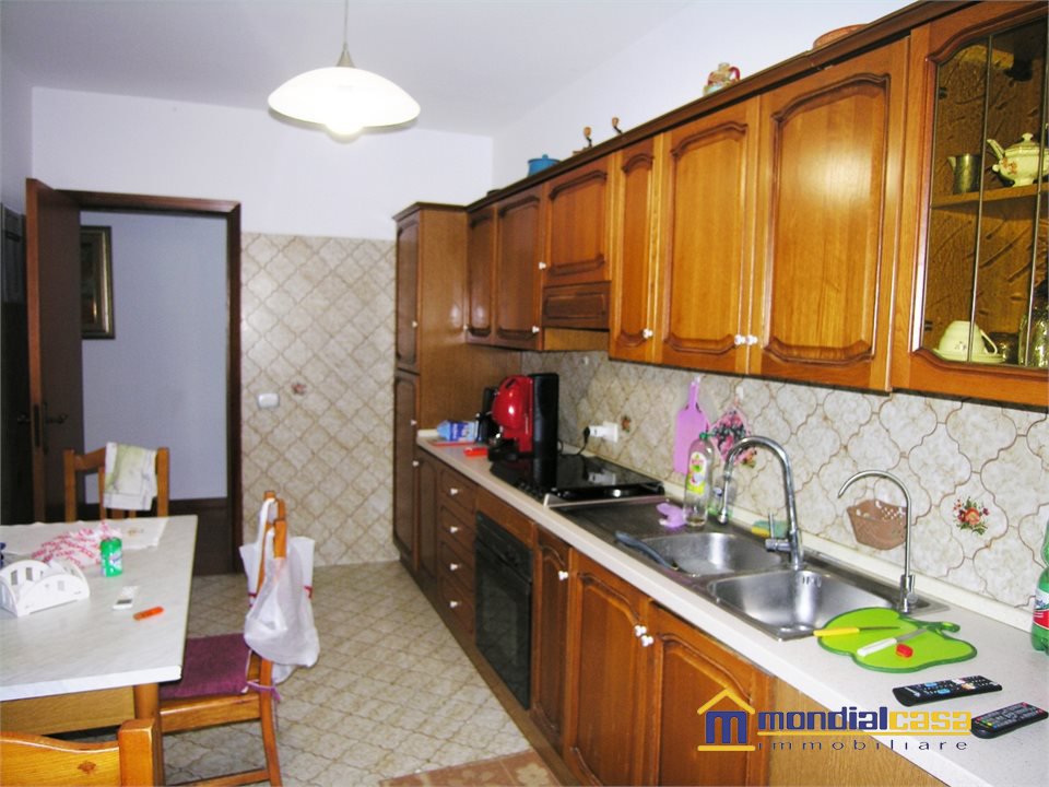 Appartamento a primo piano di un edificio con totali nove unità, l'appartamento di generosa grandezza si compone di un ampio soggiorno, comunicante con la cucina (quindi possibile abbattendo la parete realizzare ambiente unico), cucina, con comodo balcone che è stato sfruttato in parte per lavanderia; da un disimpegno si giunge alla zona notte, con camera matrimoniale, bagno, ed altre due camere da letto; al piano seminterrato troviamo un grandissimo garage dove è assegnato un posto auto, oltre ad un vano cantina di pertinenza esclusiva. L'appartamento può essere abitato anche da subito, soluzione ideale per lo spazio e per la zona molto tranquilla, sulla parte posteriore bel panorama su campagna e mare, Ottimo affare !!!