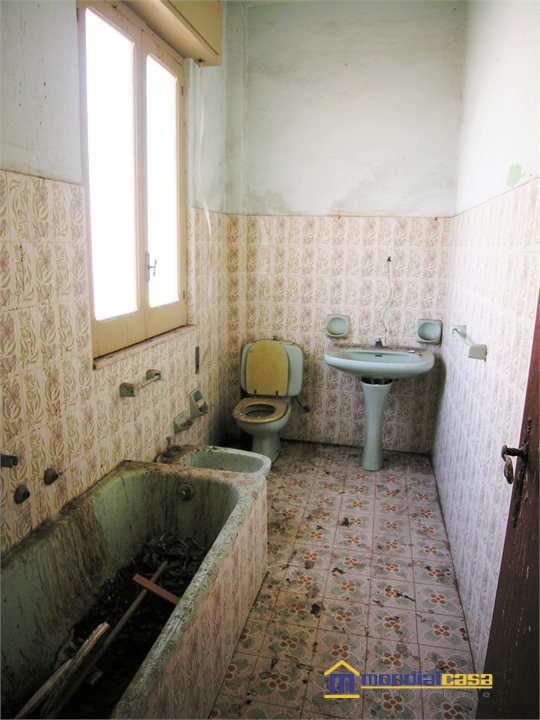 Casa su tre piani, composta da ingresso un vano, garage (in base alle esigenze può essere destinato a cucina), lavanderia e servizio, il tutto al piano terra; due camere e bagno a primo piano; ed in fine copriscala, vano cucina e piccolo terrazzino a livello al secondo ed ultimo piano. La casa necessita di ristrutturazione ma il prezzo richiesto è adeguato alle condizioni e alla vetustà